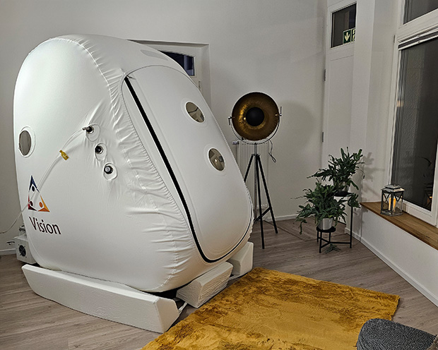 Die hyperbare Anwendung ist ein Verfahren, bei dem in einer Druckkammer normale Luft (21 % Sauerstoff) unter leichtem Überdruck (1,3 ATA) eingeatmet wird, um deutlich mehr Sauerstoff im Blutplasma zu lösen, wodurch auch schlecht durchblutetes Gewebe erreicht und dessen Versorgung, Regeneration und Stoffwechsel verbessert werden.